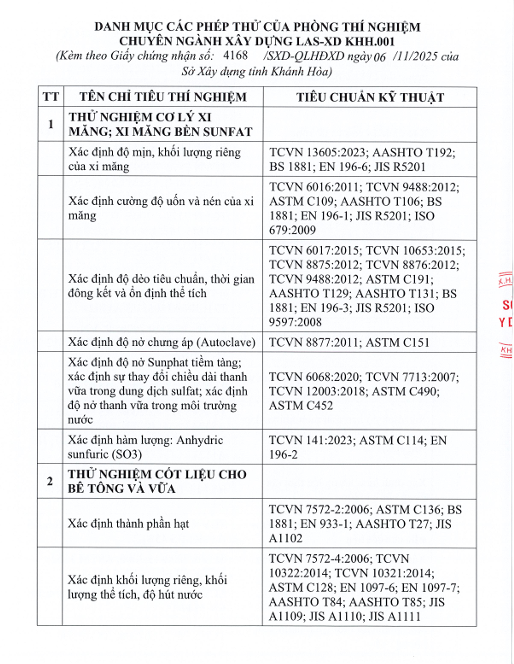DANH SÁCH TRẠM THÍ NGHIỆM